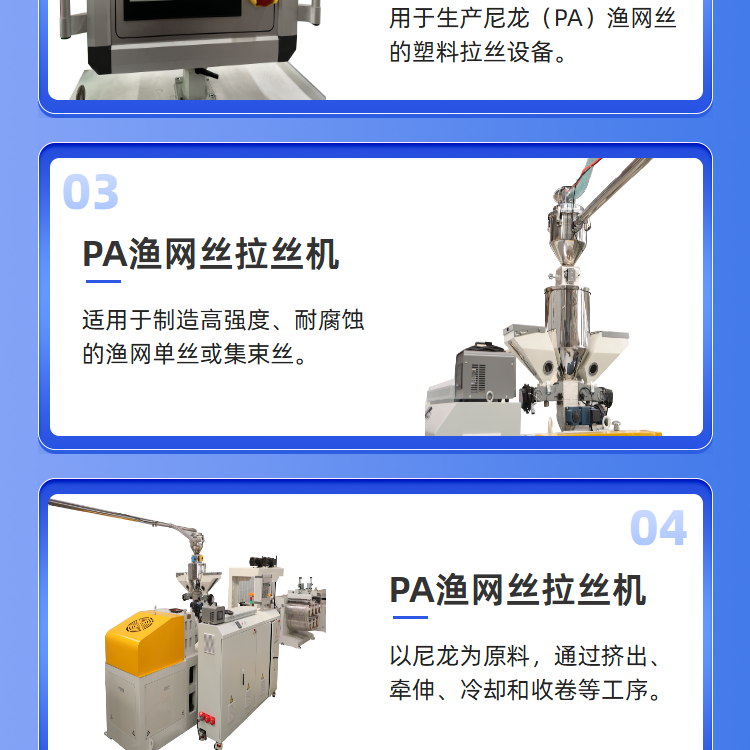 • 产品名称: PA渔网丝拉丝机